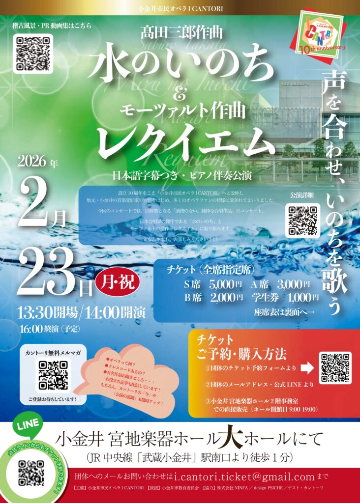 2026年2月23日(月・祝)髙田三郎作曲「水のいのち」&モーツァルト作曲「レクイエム」(ピアノ伴奏版)公演